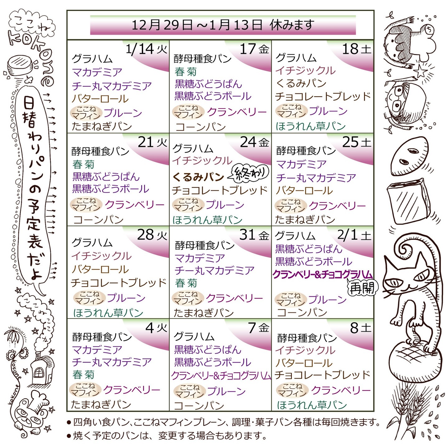 1月の営業日カレンダーです。本年もどうぞよろしくお願いします。11日(土)は本年最初の営業日です!主人がめまいでダウンしたため、長男夫婦に助けてもらいながらの営業です。久しぶりなのもあって緊張していま..