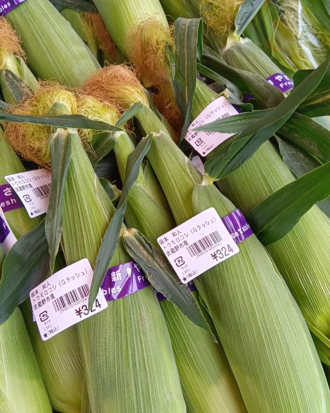 こんにちは‼️武蔵野新鮮館です😀本日も夏野菜が出始めてますよ〜✨とうもろこし、ヤングコーン、トマト、き..