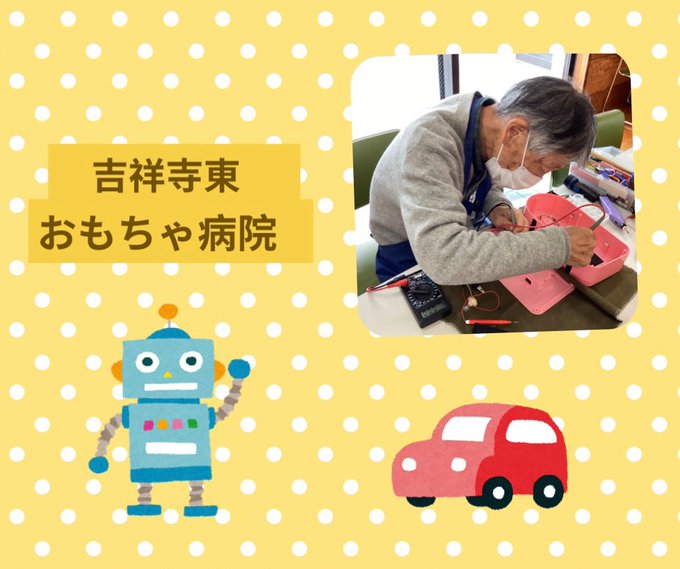 今日は「吉祥寺東おもちゃ病院」がありました。 おもちゃドクターが、壊れたおもちゃを1つ1つ丁寧に直してくれました。いつもありがとうございます。 次回は、9月に予定しております♪