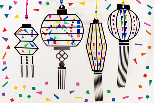 【イベント情報】「みんなで灯すたまプラーザランタンデッキワークショップ」開催!さまざまな形の型に、シールをぺたぺたしてカラフルな柄のランタンに仕上げます。みんなが作った作品は複製してガラスデッキに展示..