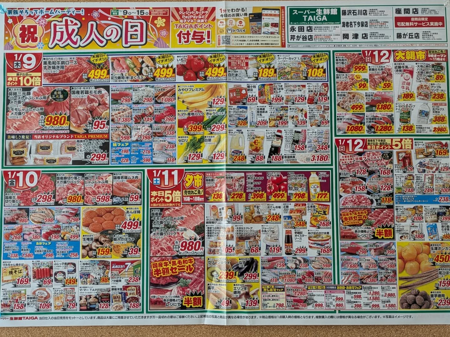 1月9日(木)〜15日(水)のチラシになります。たくさんのご来店お待ちしております😄#スーパー#たいが#藤が丘#チラシ