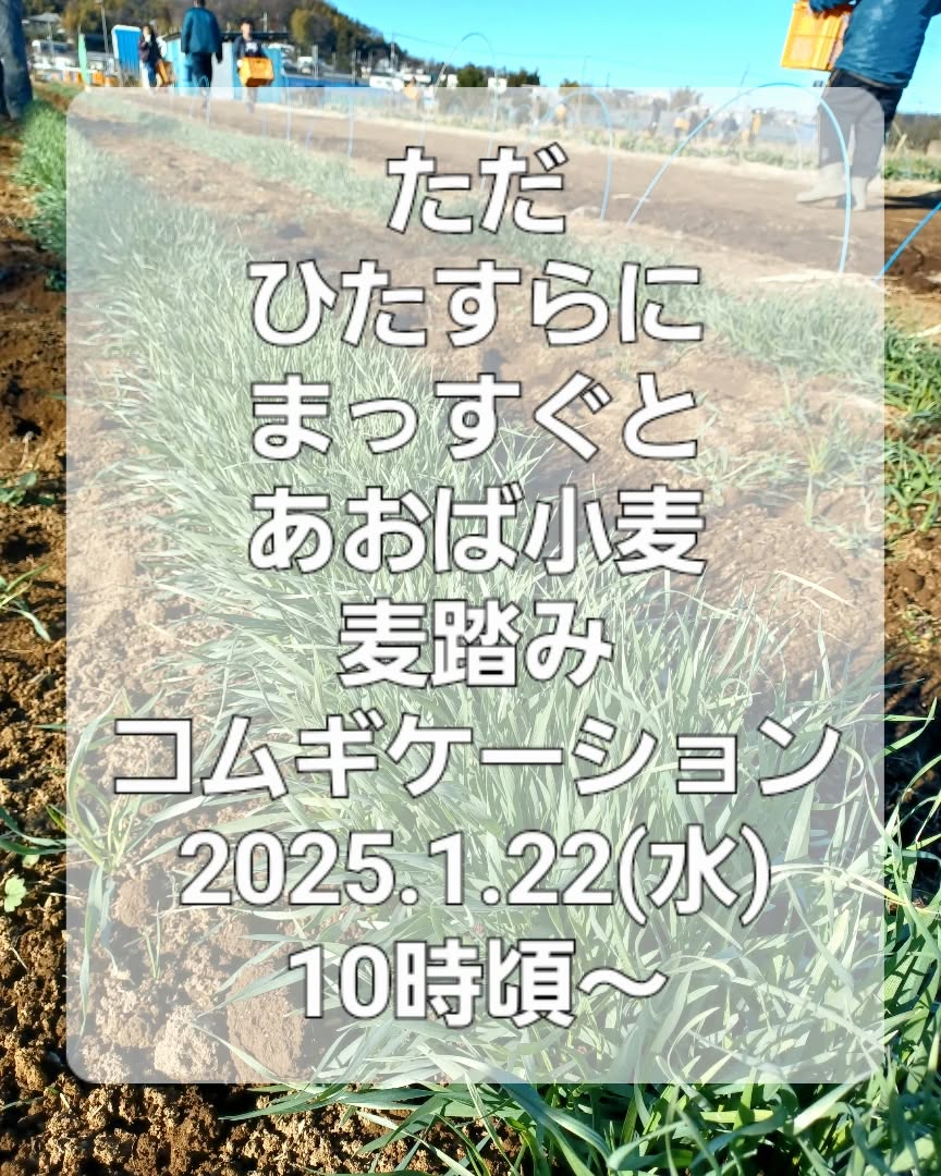 1月22日(水)10:00頃より麦踏みコムギケーションを開催します👣👣広い鴨志田の畑に芽を出したあおば小麦🌱一緒に麦踏みして、麦の成長にスイッチを入れませんか❓️ご参加の方は直接畑までお越しください😌..