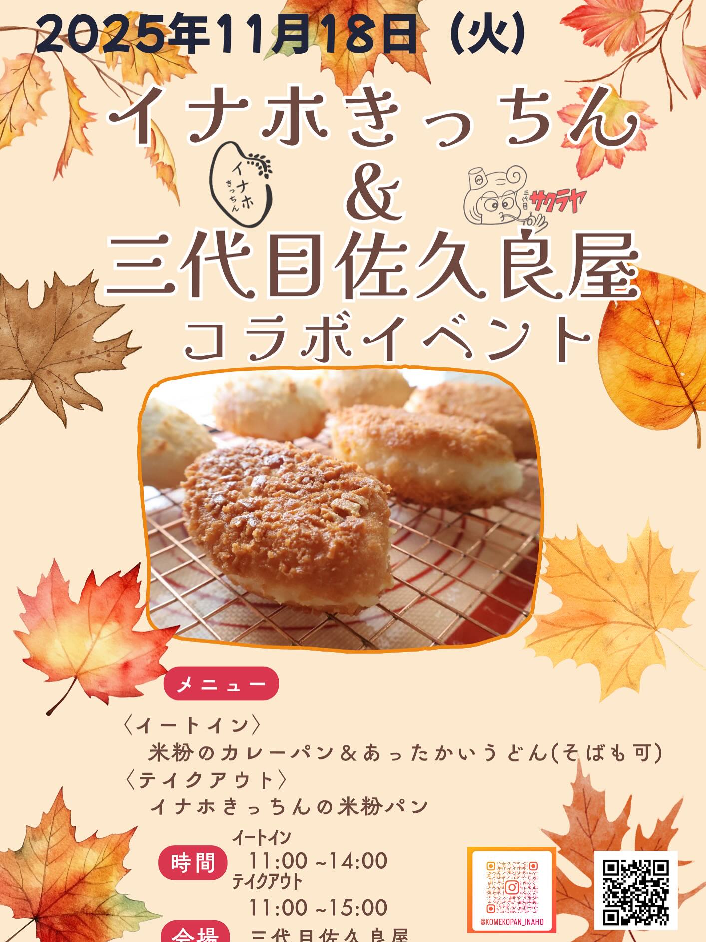 おはようございます。大分寒い朝になりました。秋ってこんな感じでしたっけ?(笑)もう少し「ちょうどいい」を味わいたいと思った、私。来週のイベント、米粉のカレーパン(イナホキッチン)とのコラボランチやりま..