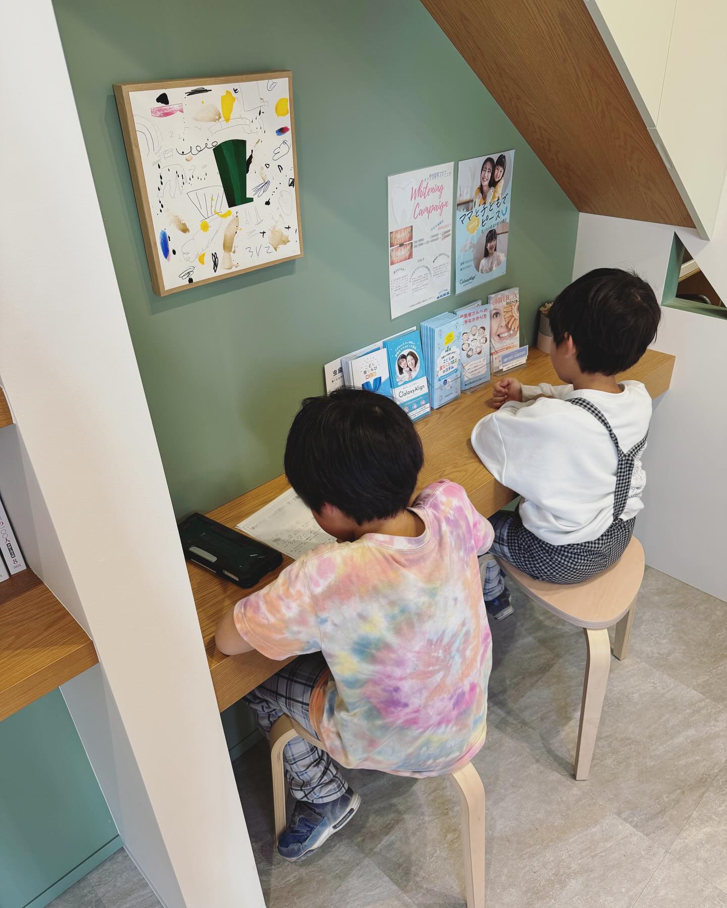 📖👦👦キッズスペースの横にはカウンターがあります。待ち時間に宿題をやっている偉い子発見👀✨当院は完全予..