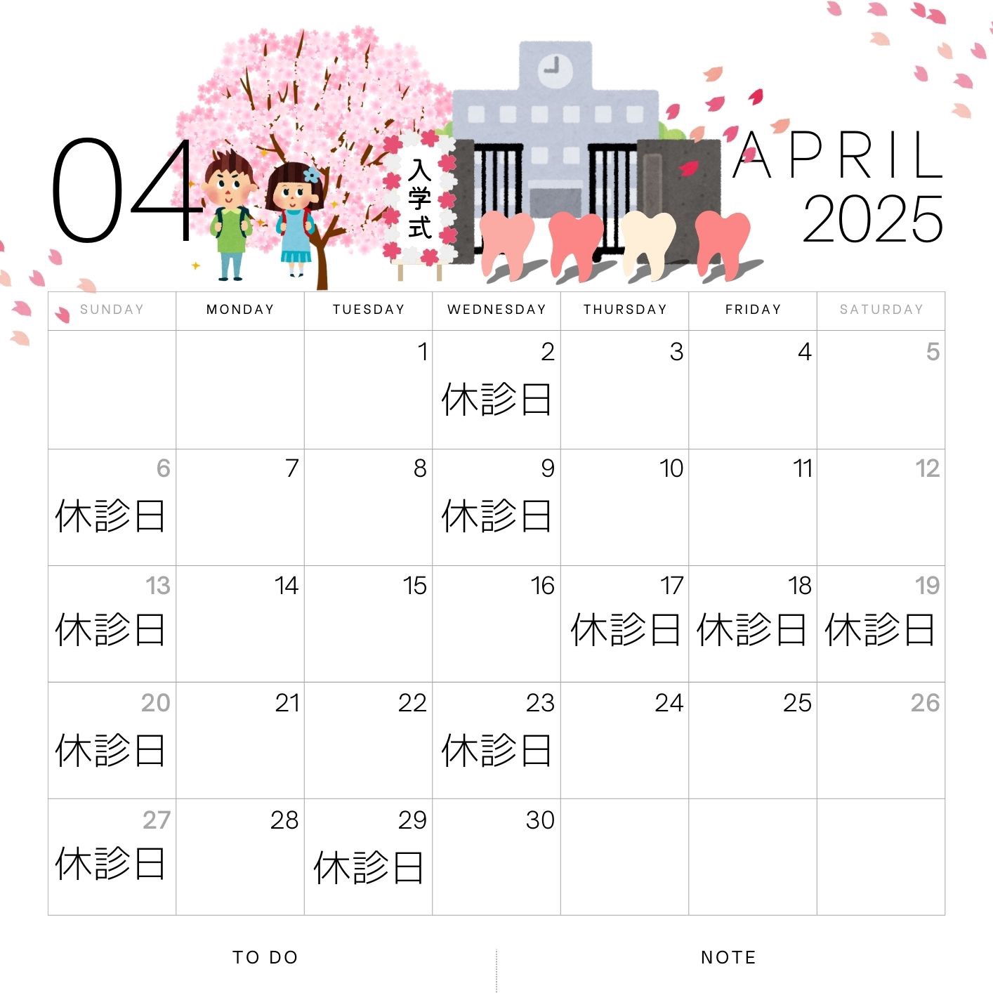 4月の診療日についてお知らせいたします。🦷皆様いかがお過ごしでしょか🌸寒暖差のある時期に差し掛かって..