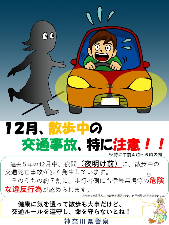 今年も残りわずかです!12月、特に多く発生する交通事故についてポストしました。引き続き安全運転をよろしくお願いいたします。☆無事故で年末 笑顔で新年☆#神奈川県警02360