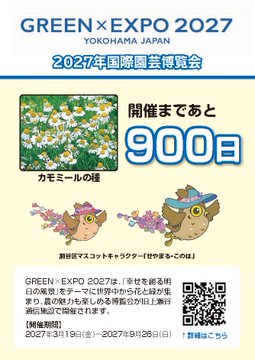 本日9月30日は、横浜・上瀬谷の会場で開催される「GREEN✕EXPO2027」の900日前です!本日から、区役所や区内公共施設で、カモミールの種とおうちで花を育てられるフィルムプランターを先着でプレ..