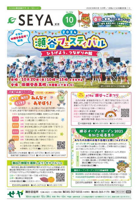【広報よこはま瀬谷区版10月号公開!】特集瀬谷フェスティバルを楽しもう!瀬谷区WEBやカタログポケットからご覧ください瀬谷区WEBhttps://city.yokohama.lg.jp/seya/ku..