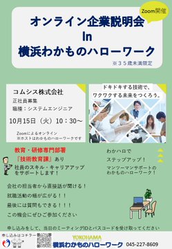 #横浜#わかもの#ハローワークでは#オンラインによる#会社説明会を実施します説明を聴くスタイルでお気軽に!会社の魅力がわかるかもお申し込みはコチラのHPから!https://jsite.mhlw.go..