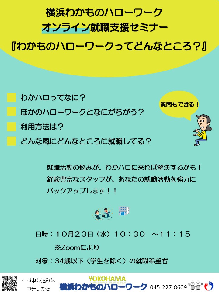 #横浜#わかもの#ハローワーク#オンラインセミナーのご案内#わかハロで就職活動わかハロをご紹介します#みんなどうやって就職してる?#わかものハローワークって#どんなところ?お申込みは↓↓↓こちらからh..