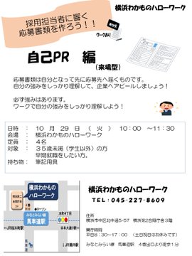 #横浜#わかもの#ハローワークの#就職支援セミナー#応募書類の書き方に苦戦していませんか??#自己PRには書き方がありますワークを通して自己PRの書き方を学ぼう!#就職活動#わかものハローワーク申し込..