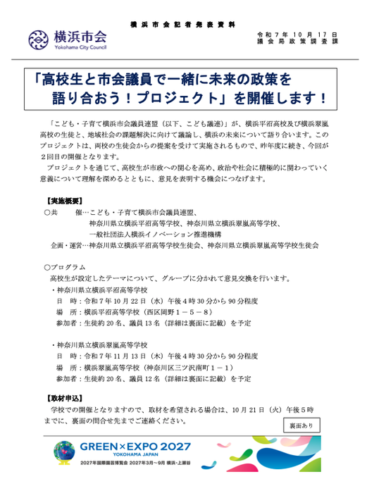 県立高校の生徒会の皆さんからの提案企画!https://city.yokohama.lg.jp/city-info/koho-kocho/press/shikai/2025/1017kodomokos..