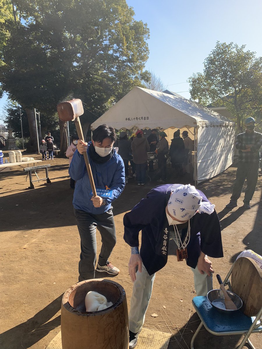 今日は鶴見の各地で久しぶりにお餅つきが開催!当職の「横浜一、腰の入っていない餅つき」も三年ぶりに復活。各地に戸惑いと笑撃を残しつつ、楽しい1日でした #山田か #横浜市会議員