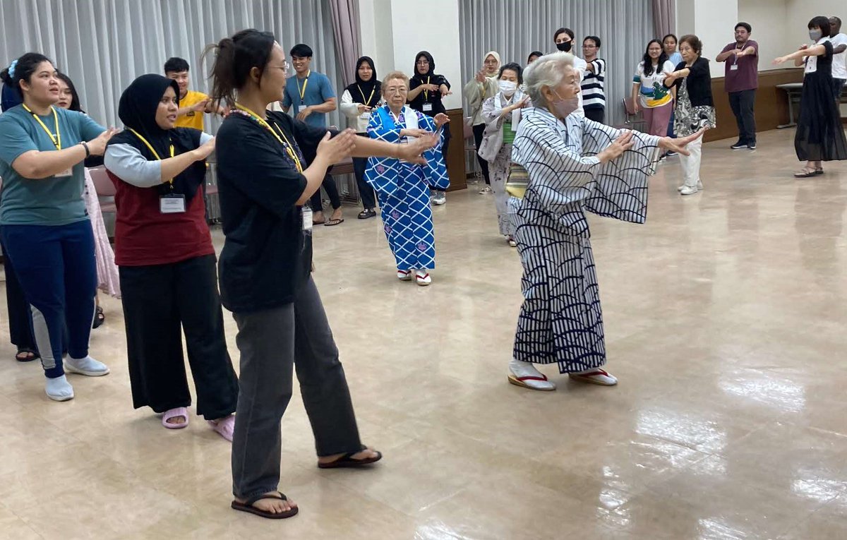 千住東一丁目町会・AOTS東京研修センター主催の納涼大会に向けて、町会の皆さんが産業技術を学ぶ外国人研修生と一緒に盆踊りを練習し、交流を図っています😃