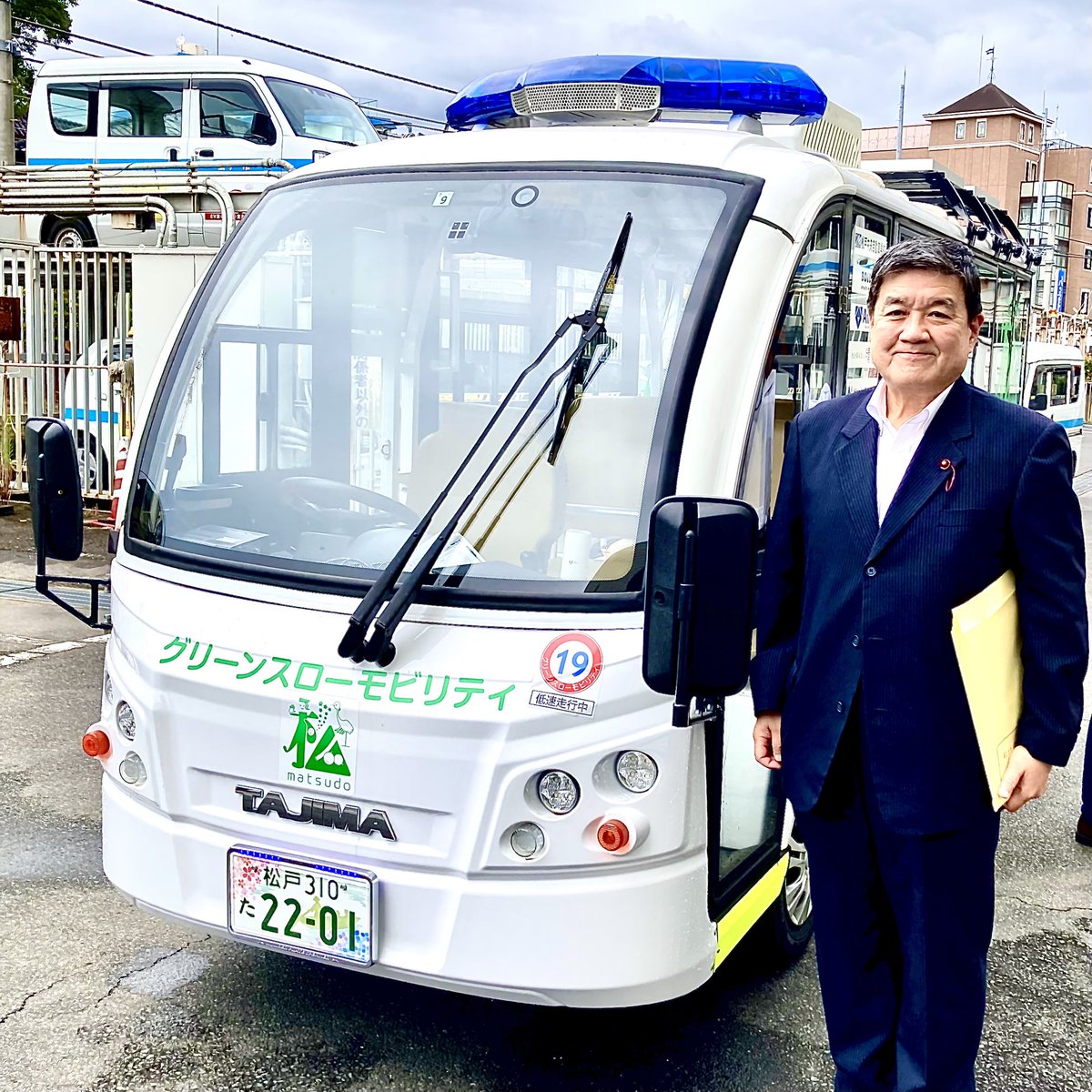 グリーンスローモビリティ🚎 松戸市の取組を視察。 高齢化が進む中、交通不便が課題になっていますが、地域の皆様の力で運行している松戸市の先進的な取組は大変に参考になりました😃 災害時には天井の太陽光パネルが緊急発電所として活躍するそうです。 #足立区 #公明党 #吉田こうじ #グリスロ