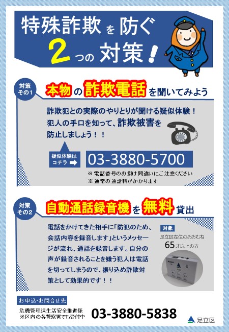 今週は、足立区の職員を名乗る還付金詐欺の電話です。
