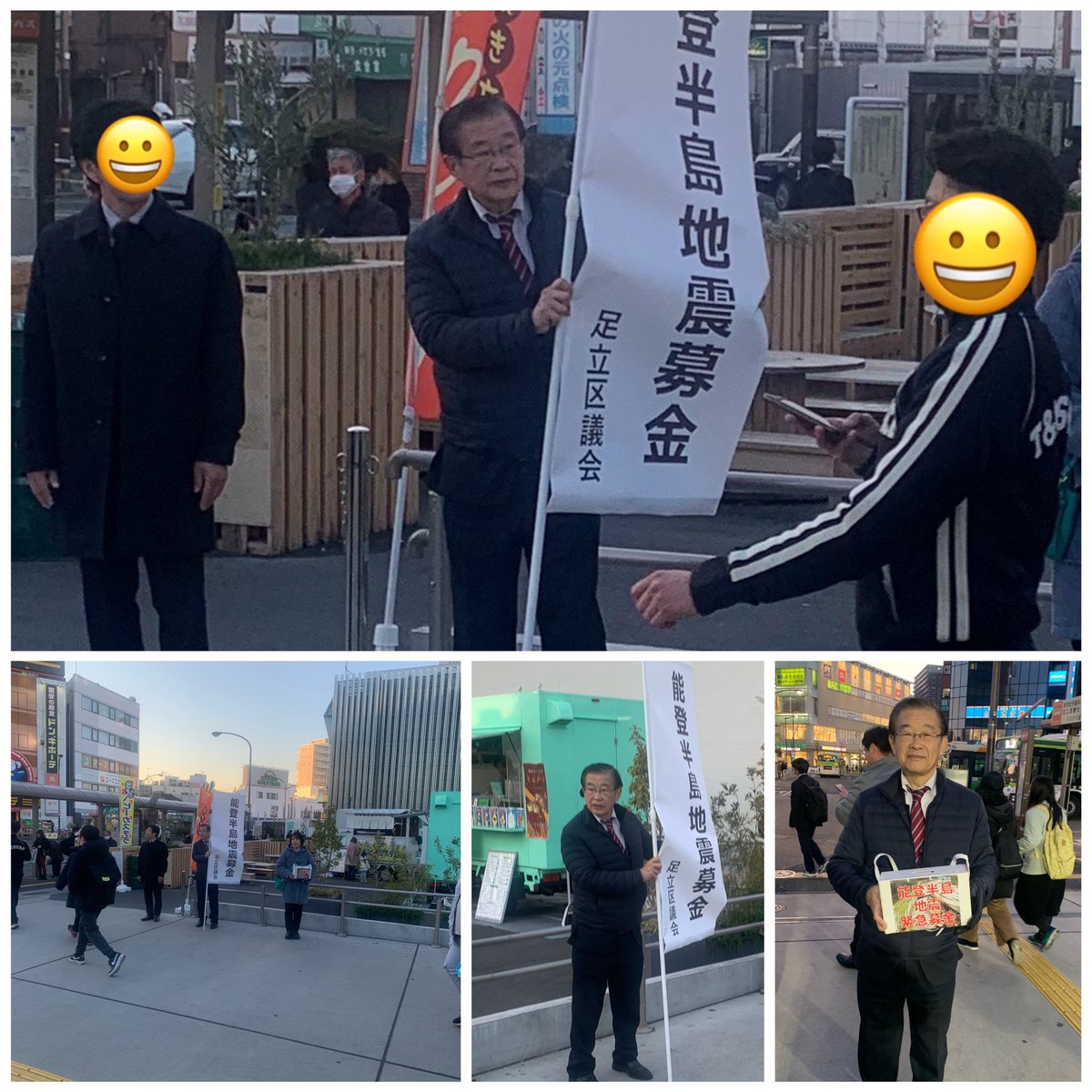 #能登半島地震 被災地支援と救援に 🟢緊急募金を足立区議会で実施 区内主要4駅(北千住駅・綾瀬駅・竹の塚駅・西新井駅)に超党派で分かれて❗️ 私は西新井駅西口駅前に参加、駅を利用する方々に協力を呼びかけました まごころのご協力に感謝申し上げます 🟢石川県東京事務所に直接お届けする予定です