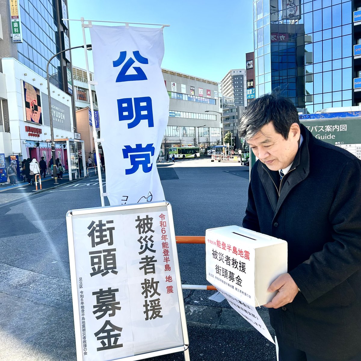 能登半島地震被災者の皆様に向けた募金活動に参加しました。 公明党足立総支部として被災者支援の会の皆さんと、北千住駅、西新井駅で実施。私は西新井駅に。 真心のご支援、ありがとうございました🙇🏻♂️🙇🏻♂️ 日本赤十字社を通じて必ず被災地にお届けします🌻 #公明党 #吉田こうじ