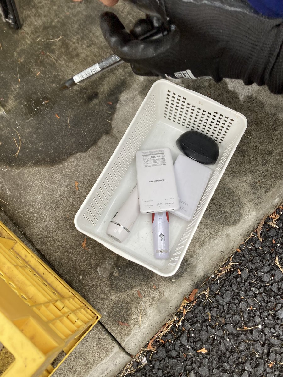ひとつの集積所からリチウムイオン電池が使われているものが5つ出てきました。おはようございます。ゴミ清掃員の滝沢です。充電式製品の多くはリチウムイオン電池が使われています。強い刺激を受けると出火する素がひとつの集積所に5つあって、ゾッとしました。リチウムイオン電池は何となくではなく…