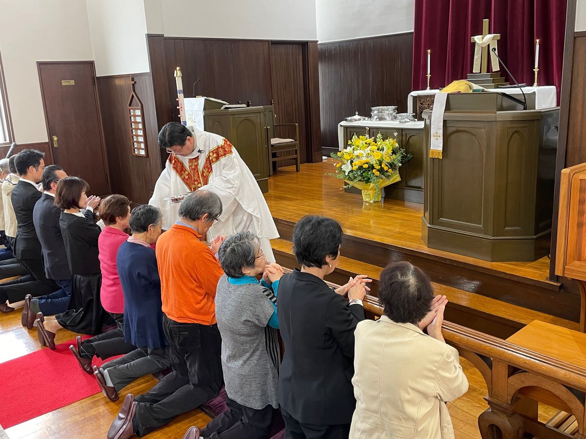 かつて、復活祭に洗礼を受けた者が白衣を脱ぎ、日々の生活へと送り出されたとされる白衣の主日を迎えると共に、新年度最初の主日礼拝がもたれました。ヨハネ福音書より復活の主イエスとトマスのエピソードに聴き、聖餐にあずかり、教会幹事、教会学校教師、教会保育園職員の任職式が執り行われました