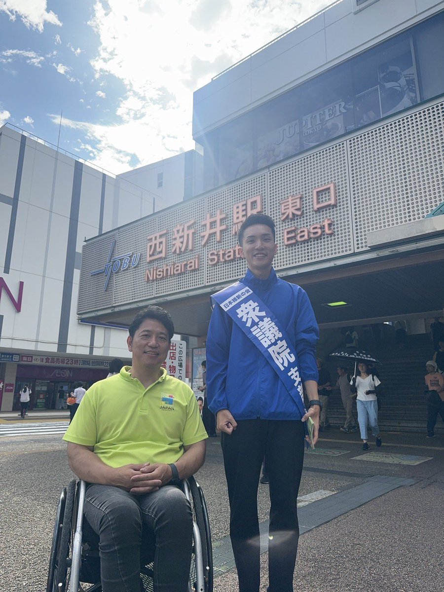 今朝の駅頭活動は西新井駅東口でした。本日は重田支部長と合同で行いました。同じ党とは思えない色合いですが、維新の場合、支部長によって活動カラーが違うため、こういうこともよくあります。ちなみに東京13区は、自民赤 維新青 国民民主青 共産青。なかなか興味深いですね #衆議院 #東京13区