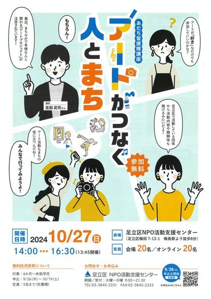 𖧷⢄⡱𖧷⢄⡱𖧷⢄⡱𖧷⢄⡱𖧷 アートがつなぐ人とまち 𖧷⢄⡱𖧷⢄⡱𖧷⢄⡱𖧷⢄⡱𖧷 開催日まであと5日!申込急いで~ \10月27日(日)開催/ アートって何? 絵画、彫刻、音楽、演劇、ダンス、朗読、etc. 自分がしたい表現がアートです!! アートに興味がある人、一緒に楽しみましょう!