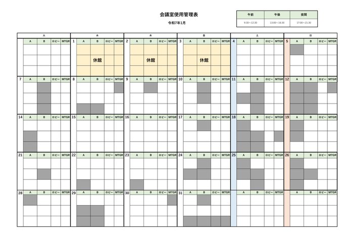 1月 EVENT CALENDER
