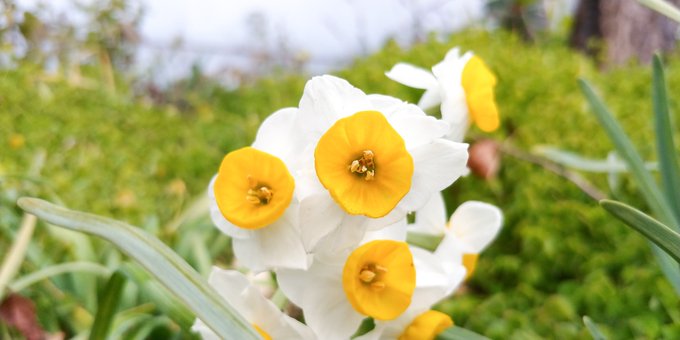 サービスセンター横で#スイセンが咲きました尖らせた口のような花で気持ちも、ほっこりしますね。ニラに似た葉を誤って、食べてしまわないようお気を付けください公園内、撮るのは写真だけで雪予報は無くなりました..