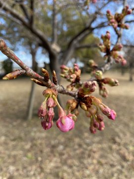 #カワヅザクラの蕾が、だんだんと色づき膨らみ始めています。先日ご紹介した、開花していた1輪も綺麗に咲いています。三連休頃まで、長い寒波が襲来しています。今日は、温かいコートの中に身を縮めてしまいたい寒..