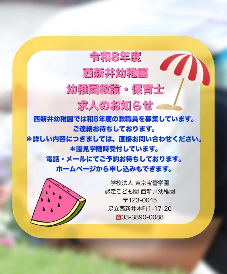 幼稚園教諭を目指されている皆様へ。ぜひ一度、西新井幼稚園に遊びにいらして下さいお気軽にお問い合わせ(電話03-3890-0088)下さいね。お待ちしております。#西新井幼稚園#足立区幼稚園#足立区こど..