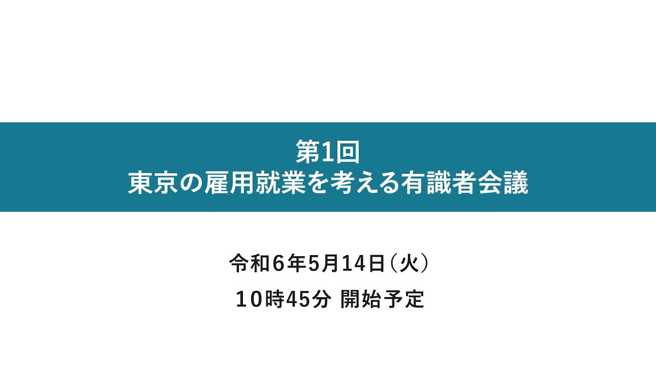 令和6年度「第1回東京の雇用就業を考える有識者会議」を配信いたします。日時:令和6年5月14日(火曜日) 10時45分から(予定)