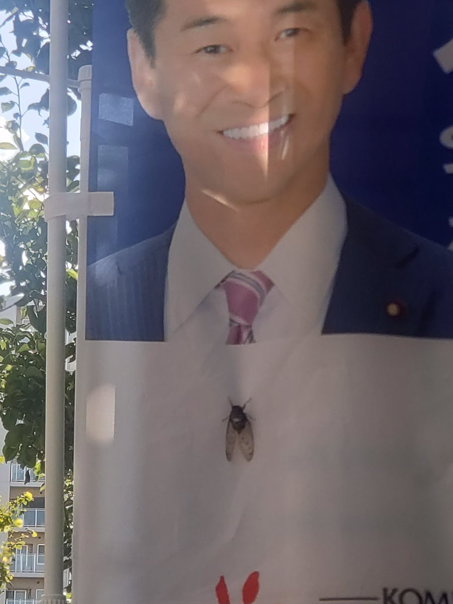 皆さまおはようございます😀 今朝、岡本みつなり衆議院議員の 旗に、蝉がとまりました。 そこで、一句 ☀️ 「朝立ちや 共にあいさつ 蝉の声」 お粗末様でした! 今日も水分補給を忘れずにお過ごし下さい😄 #岡本みつなり衆議院議員の旗