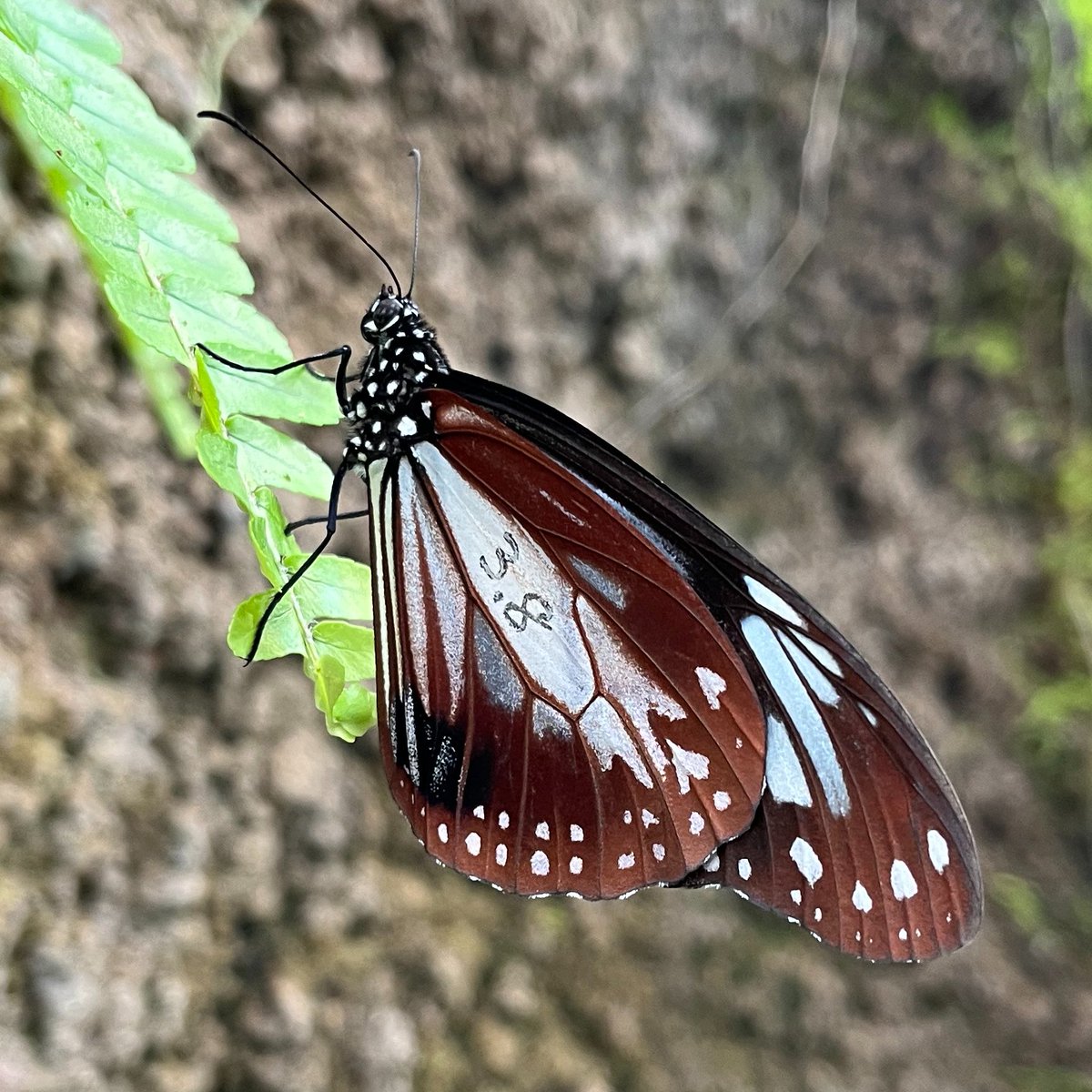 大温室で飛んでいる#アサギマダラと#スジグロカバマダラの翅をよーく見ると日付が!これらのチョウは羽化後1か月ほど性成熟に時間がかかるので、見極めるために翅に羽化日を書いています!数か月前の個体も見つか..