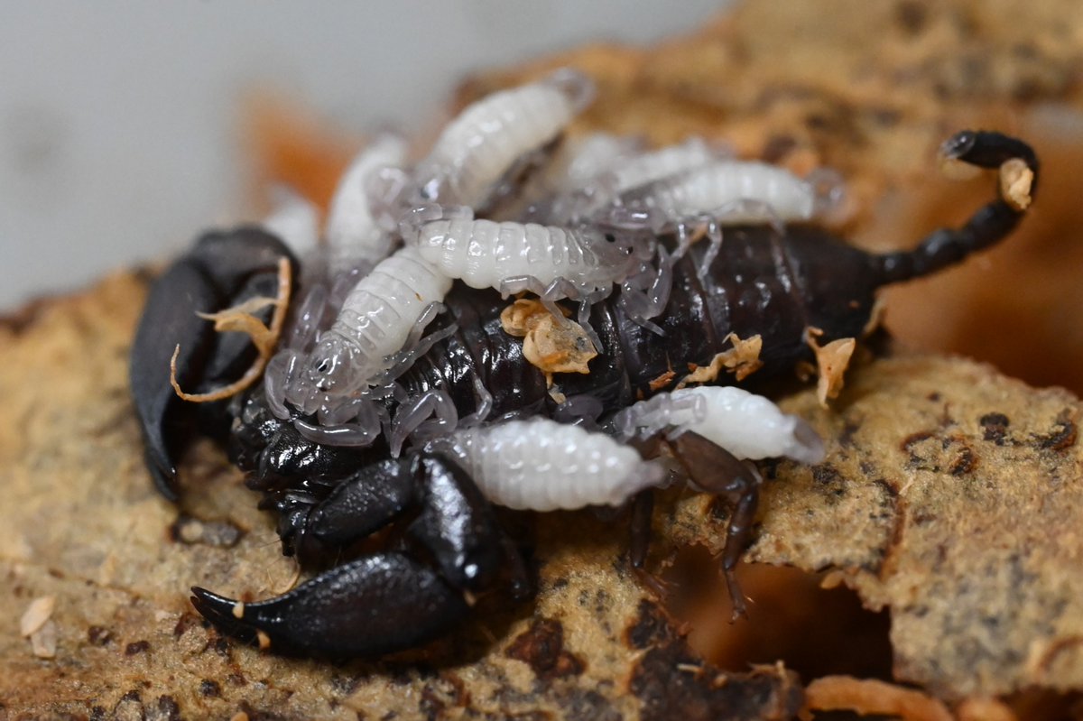 新年早々ヤエヤマサソリの幼虫が産まれていました。しばらくは成虫の背中の上で過ごすので、大事に見守ろうと思います。#生物園#足立区#サソリ#ヤエヤマサソリ#幼虫01686