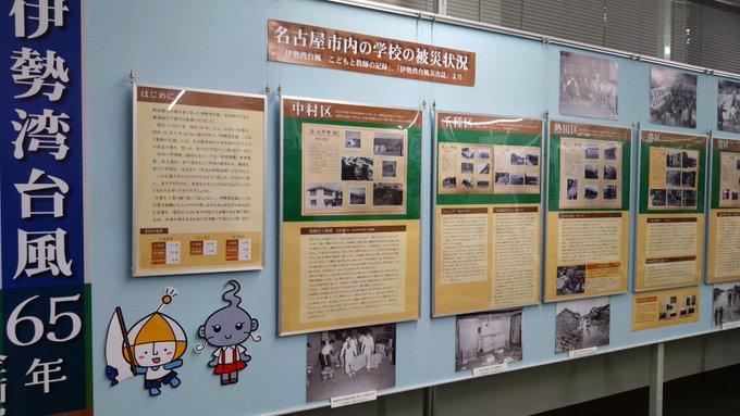 現在、港防災センターでは「伊勢湾台風65年企画展」を開催中です。 伊勢湾台風発災後1年以内に綴られた、名古屋市内の小中学校のこどもたちや教師の手記から当時の思い、嘆き、悲しみ、祈りなどの言葉を、各学校の被災直後の写真や米軍撮影の上空写真と共に紹介しています。
