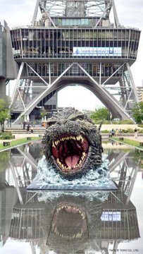 #中部電力ミライタワー南側に設置されているゴジラについて、現在のミズベヒロバでの設置は本日が最終日です明後日8/15(木)からはいよいよ地上へ上陸し、さらにタワーの近くにゴジラが接近しますこのアングル..