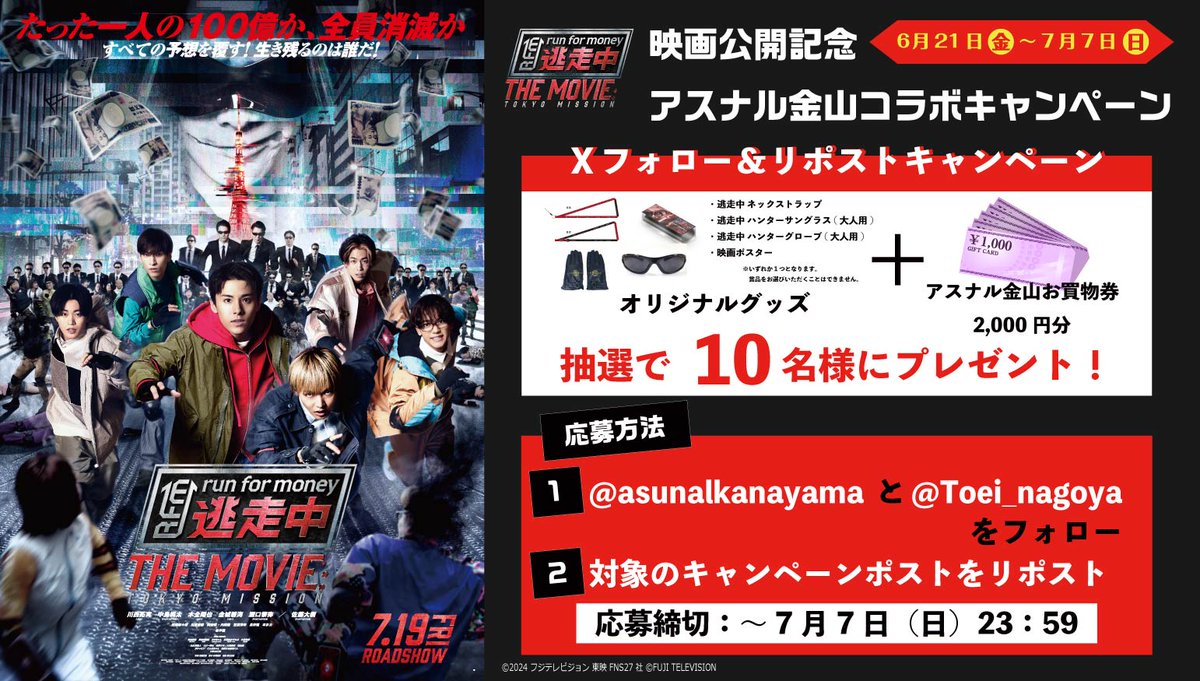 『#逃走中 THE MOVIE』 × #アスナル金山 アスナル金山さん×7.19(金)公開『#逃走中THEMOVIE 』 #プレゼントキャンペーン は本日までっ #JO1 #FANTASTICS