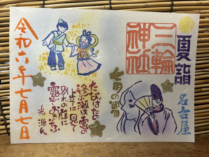 25日直書き御朱印のご案内です受け時間午前9時~午後5時まで当日限定⑬名古屋場所(28日まで)⑯ペルセウス座流星群(8月24日まで)#名古屋#大須#三輪神社#限定#御朱印#うさぎ#七夕#朝顔#神社..