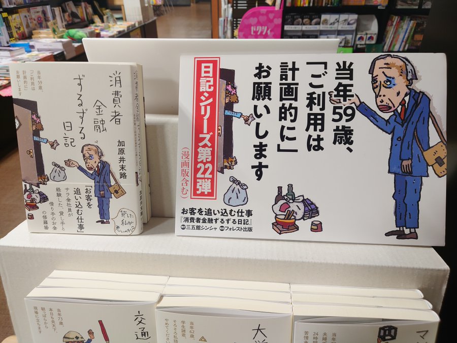#三五館シンシャ フェア 日記シリーズ第22弾! 新刊「#消費者金融ずるずる日記」発売中です。 既刊本も多数取り揃えております。 雑学・サブカルコーナーにて展開中です。 ぜひこの機会にご来店お待ちしております。