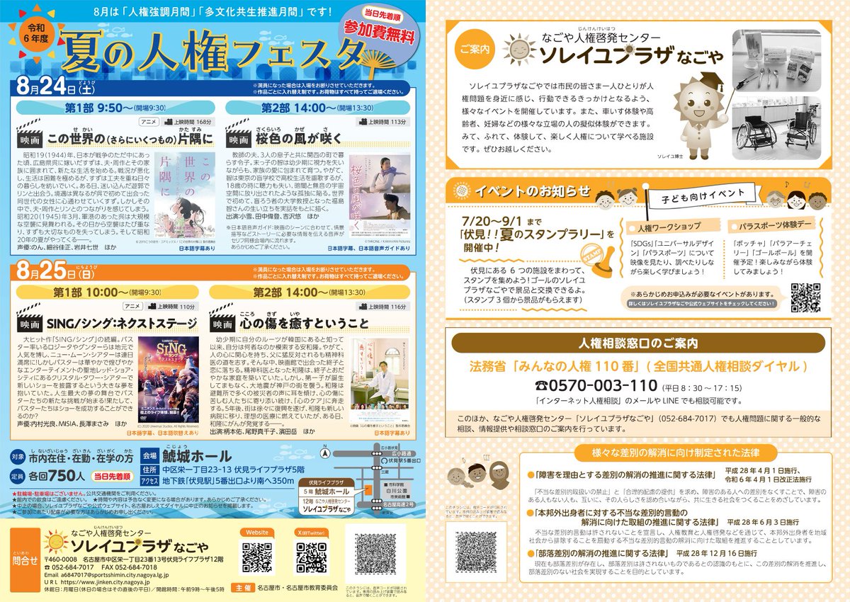 今週末は映画を観に行こう!▽▼▽今週末のpickupevent▽▼▽「夏の人権フェスタ」参加無料の映画上映会を行います!ぜひお越しください8/24(土)この世界の(さらにいくつもの)片隅に桜色の風が咲..