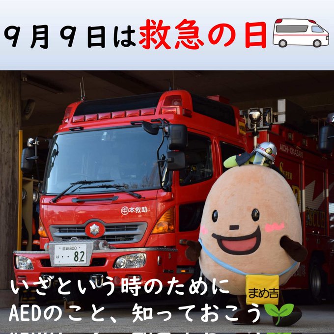 9月9日は救急の日正しく知ろう!AEDAEDは一般の方でも使用できる医療機器だよ設置場所や使い方など、AEDについて知ることで救える命があります!また、岡崎市保健所ではイベント時などのAED貸し出しも..