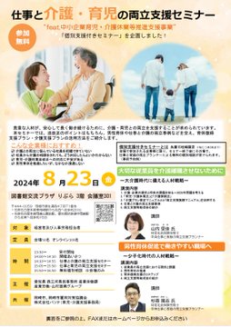 【事業者の皆さまへ】「#仕事と介護・育児の両立支援セミナー」を開催します!男性育休や仕事と介護の両立事例などを交え、育休復帰支援プラン・介護支援プランの活用方法をご紹介します。ぜひご参加ください#両立..