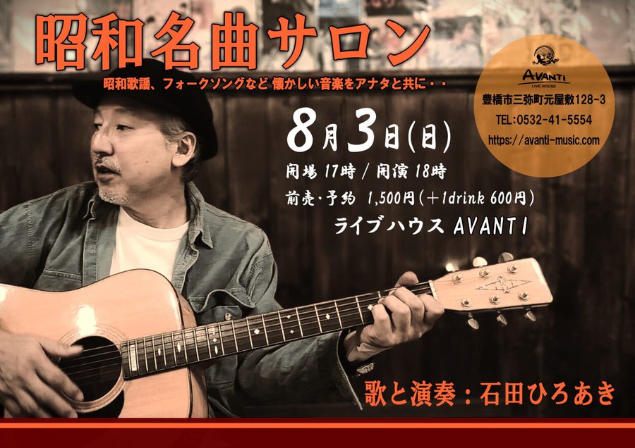 明日8.3(日)は、石田ひろあき「昭和名曲サロン」開催。人間ジュークBOXでお馴染みの石田ひろあきさんが、懐かしい昭和の名曲をた〜っぷり歌ってくれる贅沢なひと時です。懐かしい音楽に耳を傾け、ご飯を食べ..