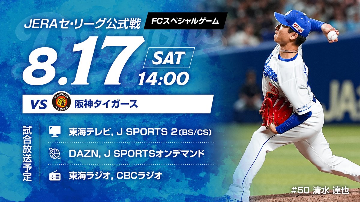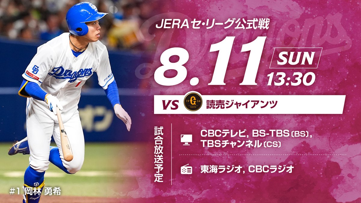 //本日の放送予定http://dragons.jp/game/airdate/\\#JERAセ・リーグ公式戦#阪神タイガース14:00試合開始#バンテリンドームナゴヤ#東海テレビ#JSPORTS#D..