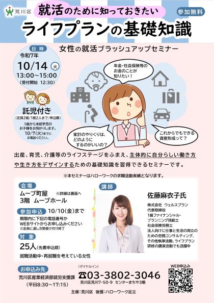 ★お仕事探し中の女性へ★ \ライフプランって?!/ 将来のお金のことが不安! お金の見える化や適切な対策を取れば、すっきり不安が解消! 人気セミナーのため、残席わずかです!! 10月14日(火)13時~15時 ムーブホール開催 https://city.arakawa.tokyo.jp/a023/seikatsu/shuushoku/jyosei_seminor_20251014.html… #荒川区 #女性#ライフプラン#セミナー#再就職