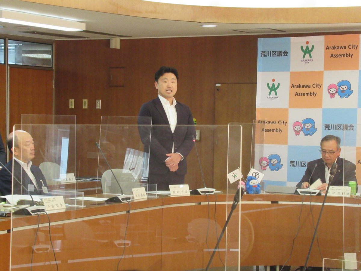 説明は通常それぞれの担当課長さんが行いますが、宮崎市議会の皆さんの視察項目は議員提出議案「荒川区子どもの権利条例」ということで、今回は副議長である私が説明に挑戦しました。