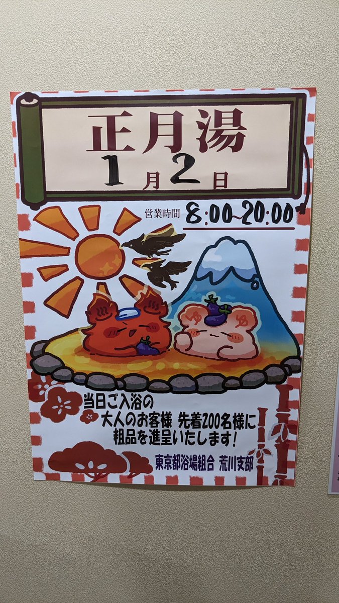 8:00~20:00のお正月特別営業時間です。熱燗風呂は温まりました♨️