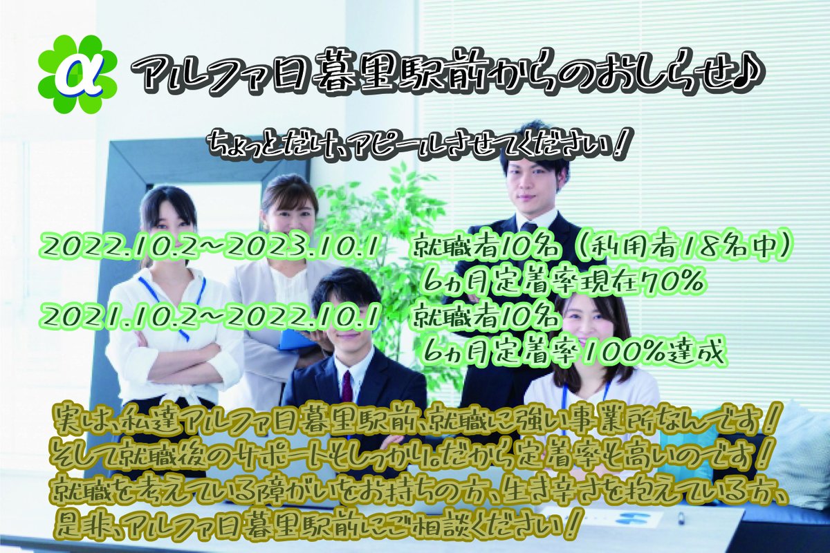 アルファ日暮里駅前、就職サポート、結構しっかりしているんです♪