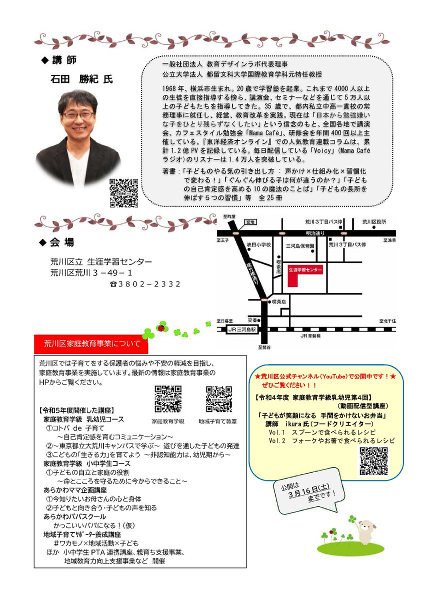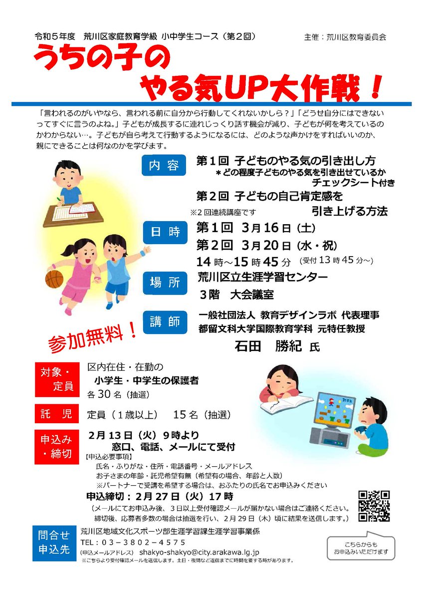 令和5年度 荒川区家庭教育学級「小中学生コース」(第2回)