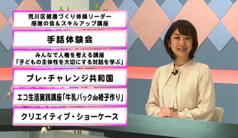 今週のCATVこんにちは荒川区は「荒川マイスター 寺岡孝子さん」を特集♪荒川区行政ナビは「児童向けひろば館の取り組み」です!その他、2/2~2/9の話題をお伝えします!お楽しみに☆